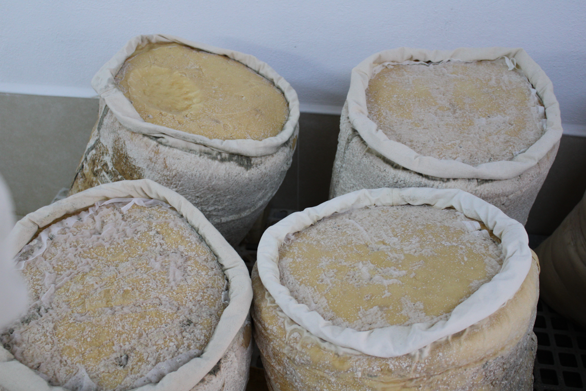 yoğrulur. Yoğrulan peynirler 15-20 kiloluk büyük bez torbalara doldurulur ve